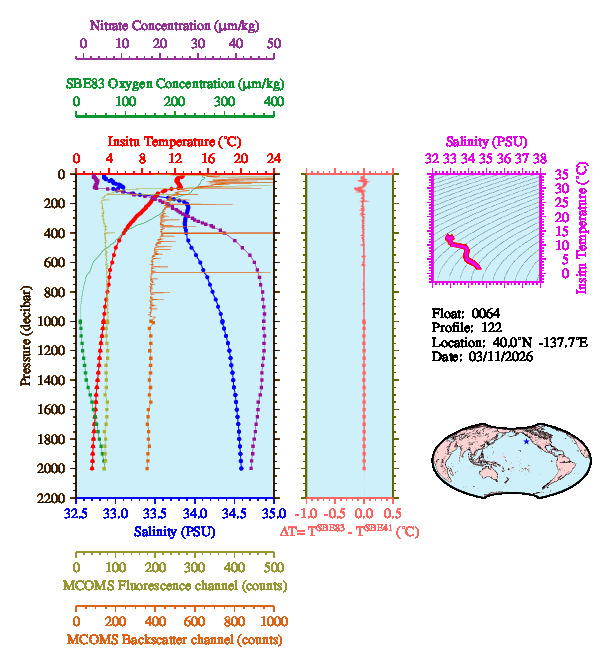 Most recent profiles from float 0064: