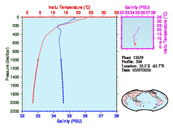 Temperature & Salinity Profiles for Float 12639