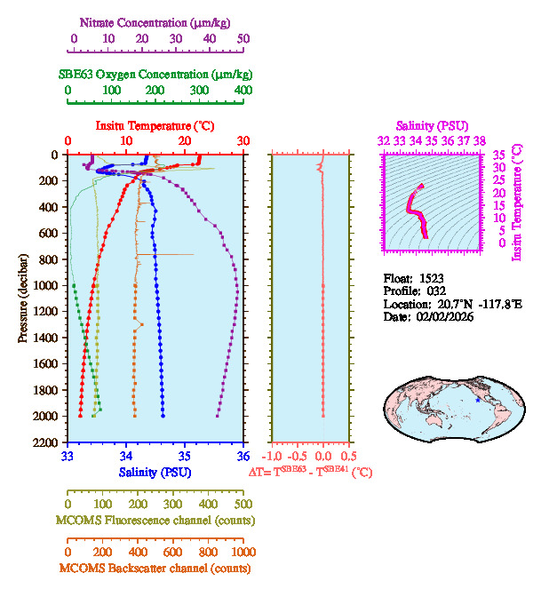 Temperature & Salinity Profiles for Float 1523