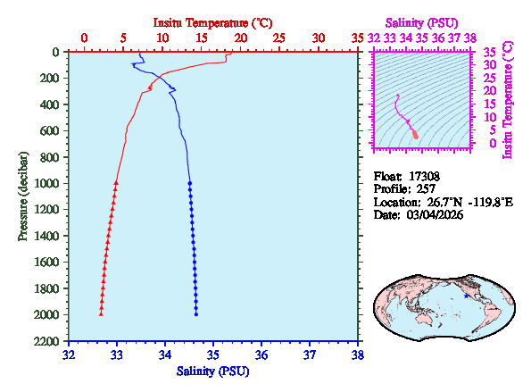 Temperature & Salinity Profiles for Float 17308