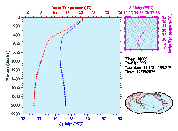 Most recent profiles from float 18009: