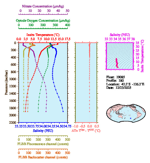 Temperature & Salinity Profiles for Float 19085