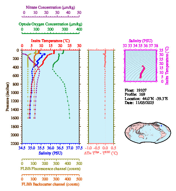 Temperature & Salinity Profiles for Float 19107