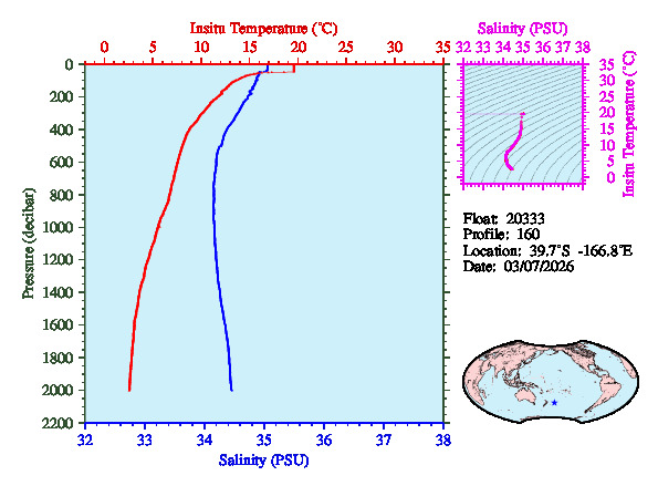Temperature & Salinity Profiles for Float 20333