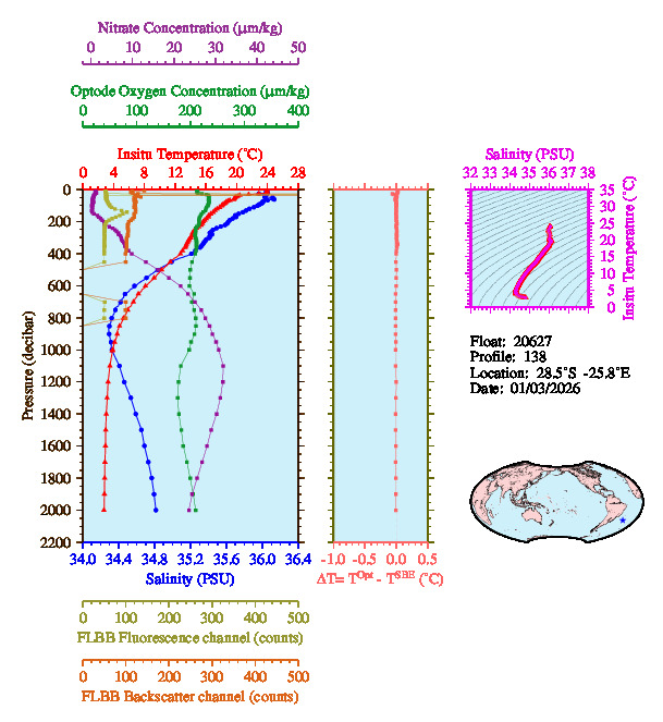 Most recent profiles from float 20627: