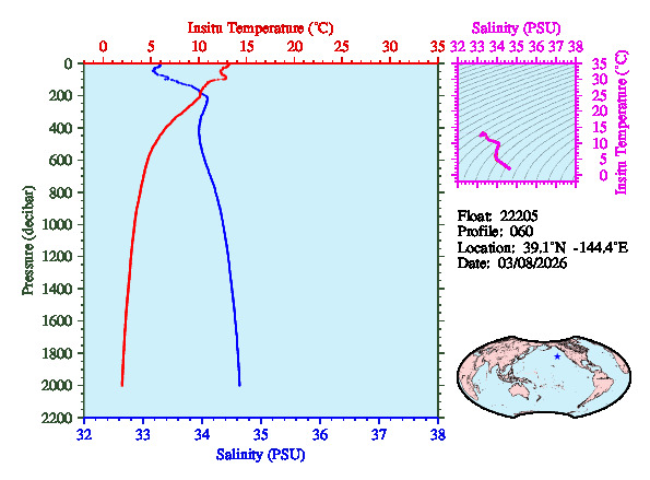 Temperature & Salinity Profiles for Float 22205