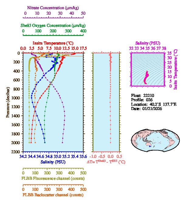 Temperature & Salinity Profiles for Float 22210