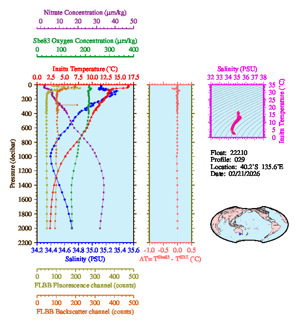 Temperature & Salinity Profiles for Float 22210