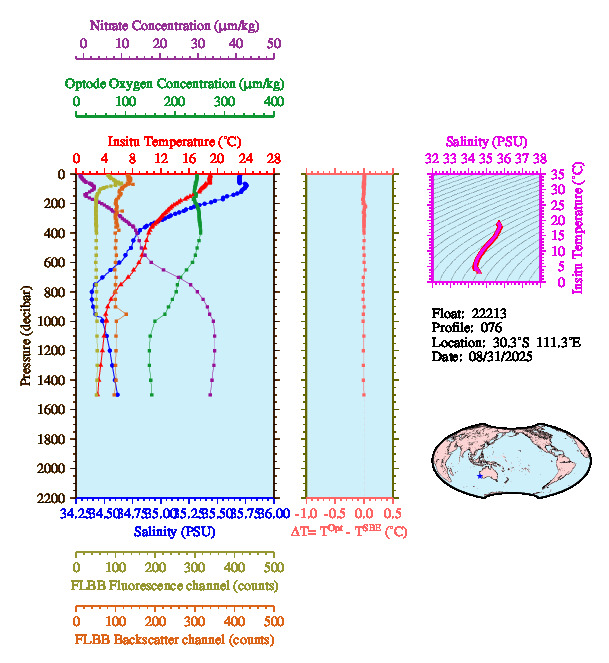 Temperature & Salinity Profiles for Float 22213