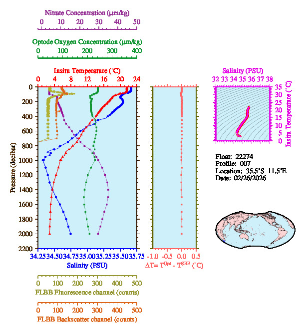 Temperature & Salinity Profiles for Float 22274