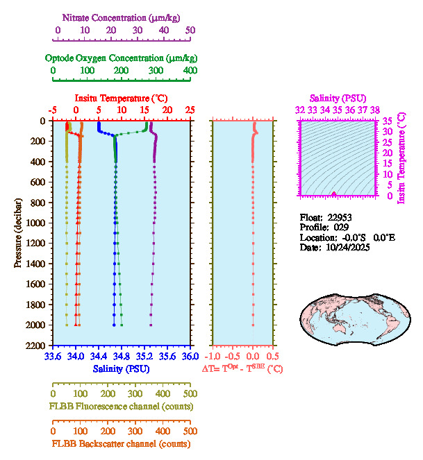 Temperature & Salinity Profiles for Float 22953