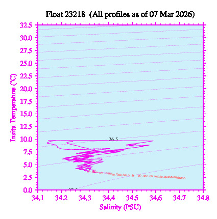 Temperature & Salinity Profiles for Float 23218