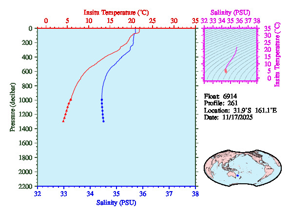 Temperature & Salinity Profiles for Float 6914