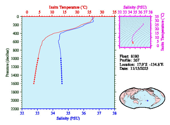 Temperature & Salinity Profiles for Float 8180